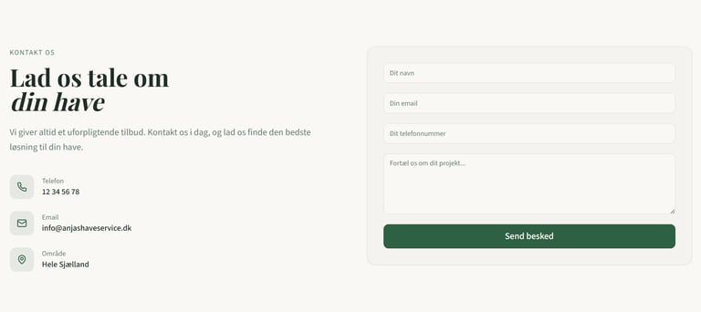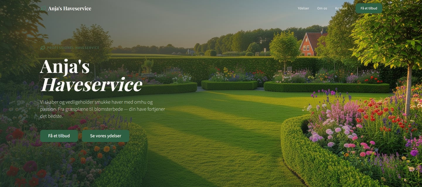 Anja’s Haveservice havde brug for en hjemmeside, der kunne gøre det nemt for nye kunder at forstå, hvad virksomheden tilbyder. Som haveservice handler meget om tillid – kunder lukker dig ind på deres private område, og derfor er det vigtigt at fremstå seriøs, ordentlig og til at regne med allerede online.