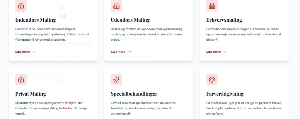 Med års erfaring og en forpligtelse til fremragende kvalitet, leverer vi malertjenester, der overgår forventningerne. Vores dygtige team bruger førsteklasses materialer og gennemprøvede teknikker for at sikre smukke, langvarige resultater.